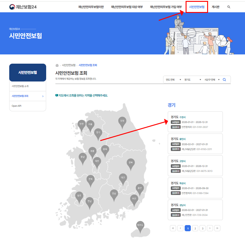 내가 사는 지역의 시민안전보험은 다음 방법으로 확인할 수 있습니다.